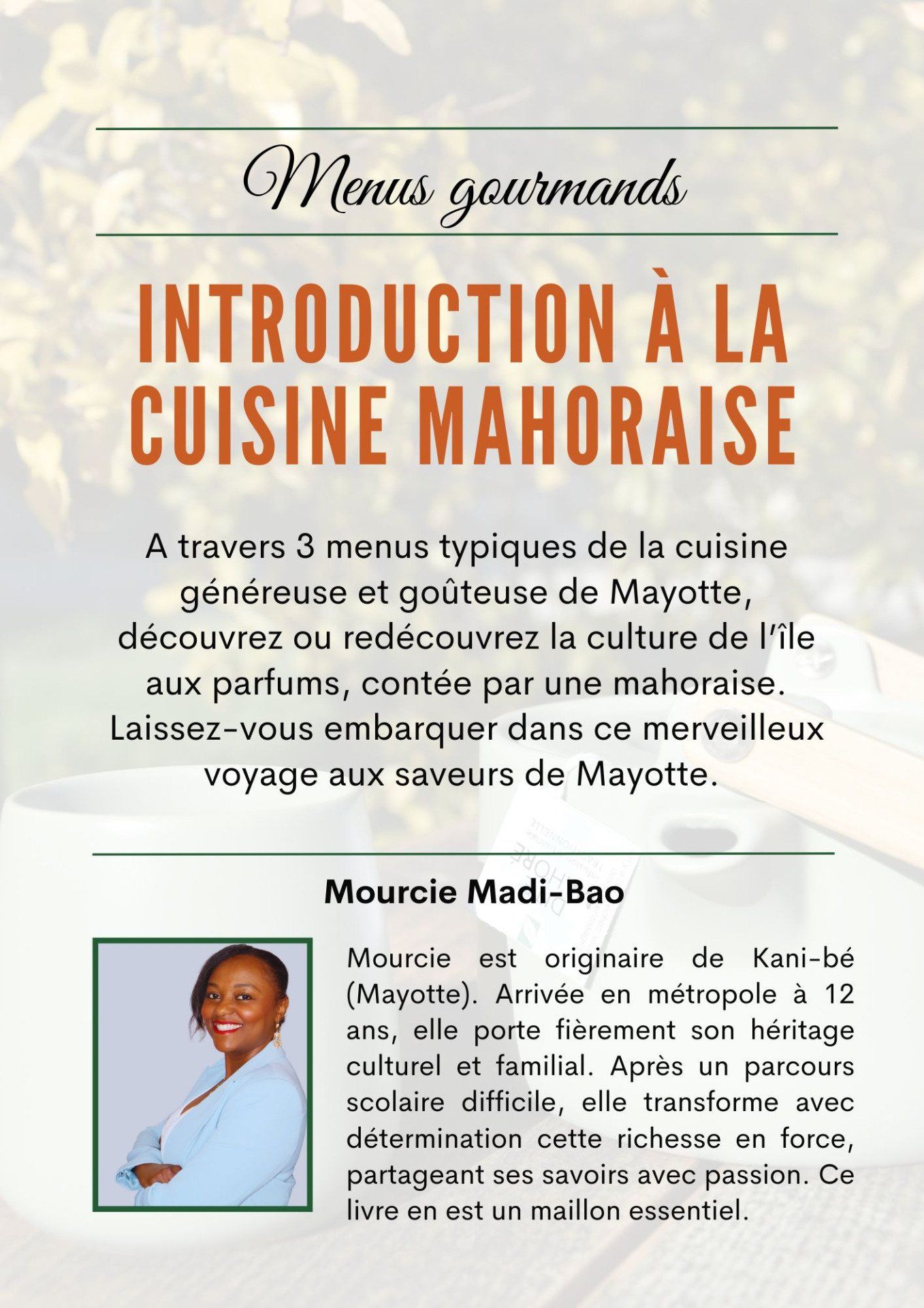 A travers 3 menus typiques de la cuisine généreuse et goûteuse de Mayotte, découvrez ou redécouvrez la culture de l’île aux parfums, contée par une mahoraise. Laissez-vous embarquer dans ce merveilleux voyage aux saveurs de Mayotte.